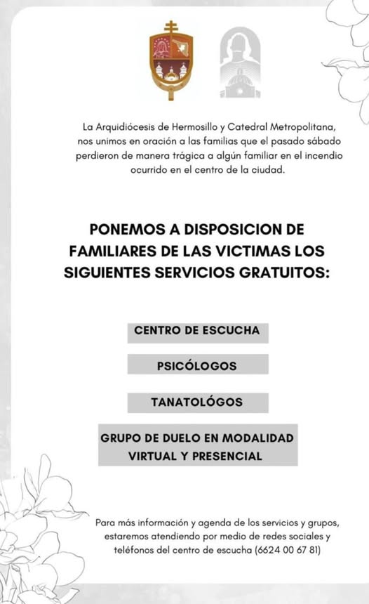 Arquidiócesis de Hermosillo ofrece apoyo espiritual y psicológico a familias afectadas por tragedia en Waldo’s