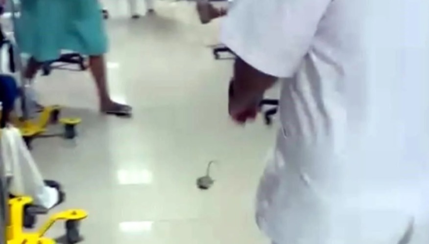 El video muestra al roedor escondido bajo una cama de hospital, dentro de una caja de cartón, mientras personal de enfermería intenta sacarlo. Al salir, la rata provocó gritos y confusión entre pacientes y trabajadores, hasta que finalmente fue eliminada y depositada en un bote de basura.