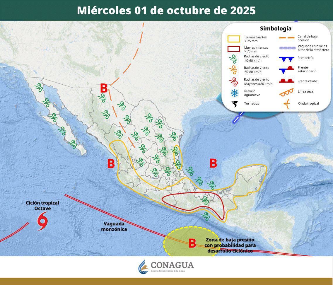 Asimismo, el Océano Pacífico se mantiene bajo vigilancia debido a tres zonas de baja presión que podrían evolucionar a tormenta tropical la próxima semana. Una de ellas registra 70% de probabilidad de desarrollo en los próximos 7 días.