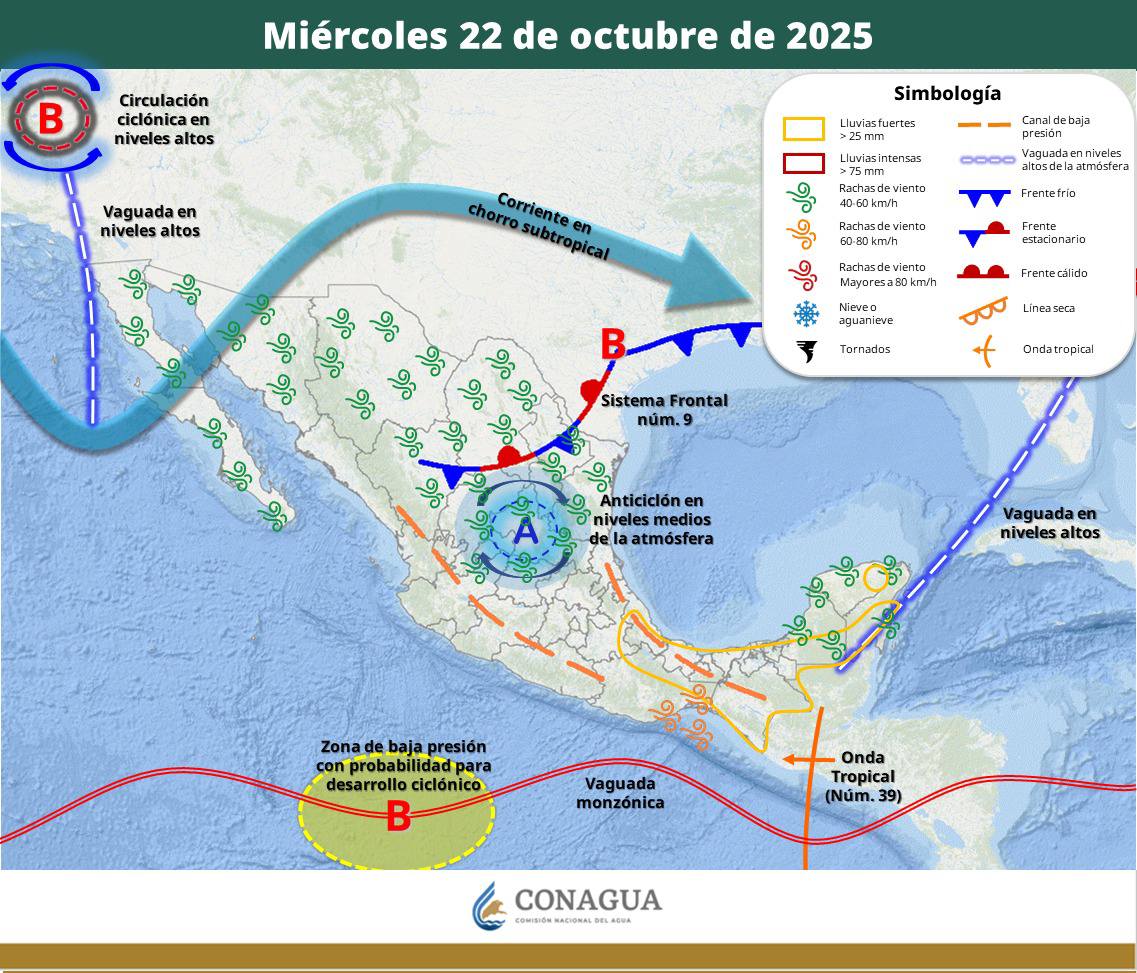 Durante este martes, una vaguada en niveles altos y la corriente en chorro subtropical se desplazarán sobre el noroeste del país, provocando lluvias ligeras (de 0.5 a 5 mm) en el norte y noreste de Sonora.