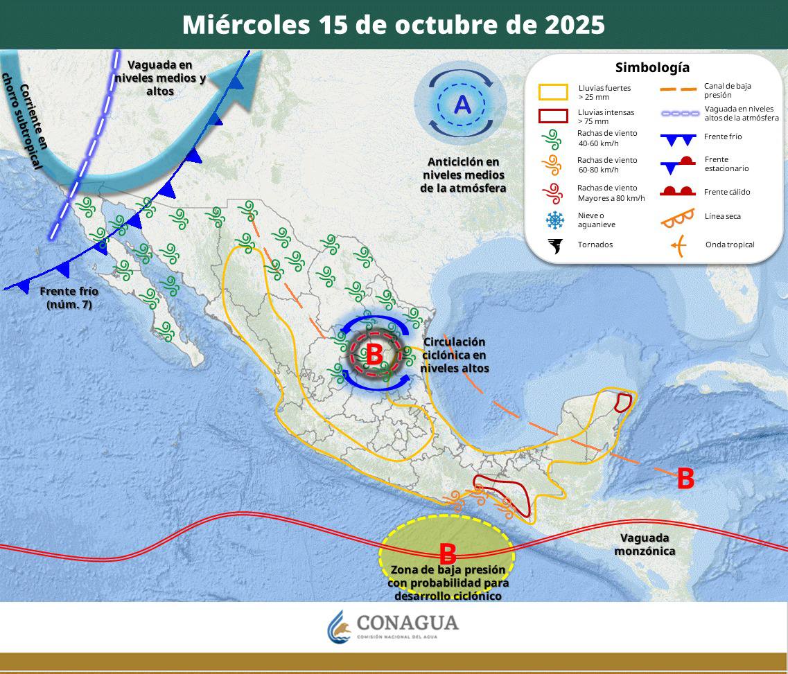 La aproximación del frente frío número 7 sobre el noroeste de México, en combinación con una vaguada en altura y las corrientes en chorro polar y subtropical, provocará rachas de viento fuertes y un notable descenso en las temperaturas en gran parte del estado. En las zonas montañosas se prevén amaneceres por debajo de los 10°C.