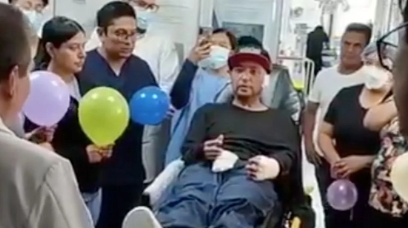 En un video compartido por Batres, se observa el momento en que Amauri agradece al personal médico, mientras es despedido con aplausos y globos de colores.